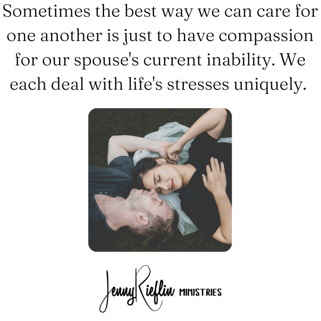 Sometimes the best way to care for one another is just to have compassion for our spouse’s current inability to handle something.