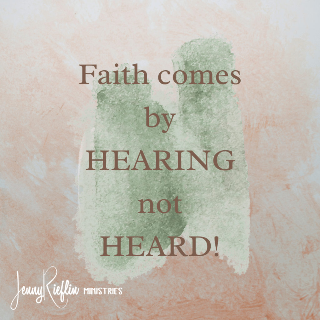 Spend time hearing every day, so the faith you need is there and ready to change your situation. Because every time we use our faith we are spending it and need to gather more. We cannot live off of yesterday’s faith in the same way a steak we ate last week cannot nourish us. Doing it every day ensures that it is fresh, just like consuming food, when we hear the word it nourishes us and when we don’t do it daily we will be weak. So, you will need a steady diet of a variety of His Word. Because faith comes by HEARING, not HEARD. ~Be Blessed, Jenny xoxo