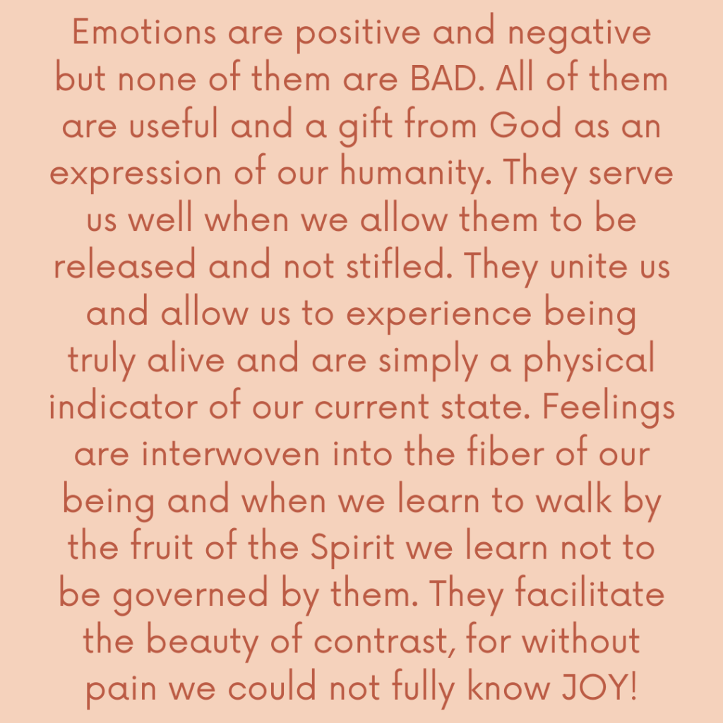 Or you may have been taught by the church that emotions are BAD and that “good Christians” should always be spiritual.