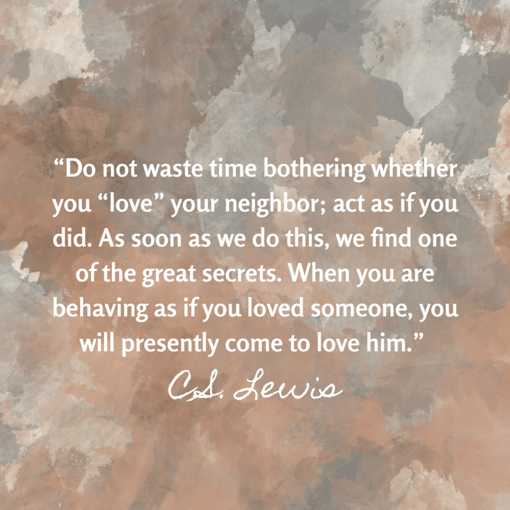 C.S. Lewis is challenging us to realize that WE can change our THOUGHTS (and thus our FEELINGS) with ACTIONS of LOVE.