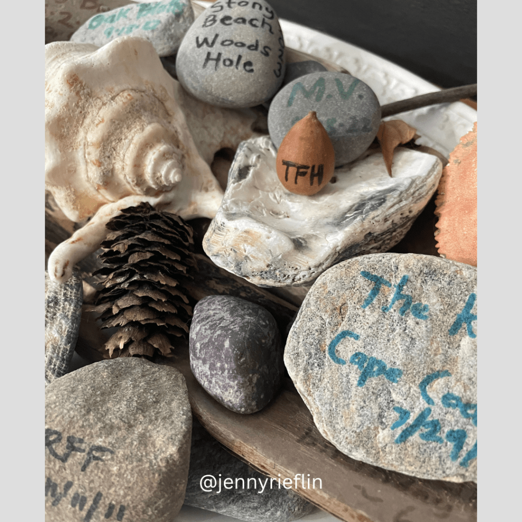 Little things we have picked up when on vacation or just on a walk as a family and I like to date them so we have memories of our many adventures.