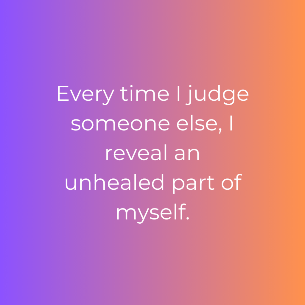 But when we judge others, we reveal a part of OURSELVES that is yet UNHEALED.