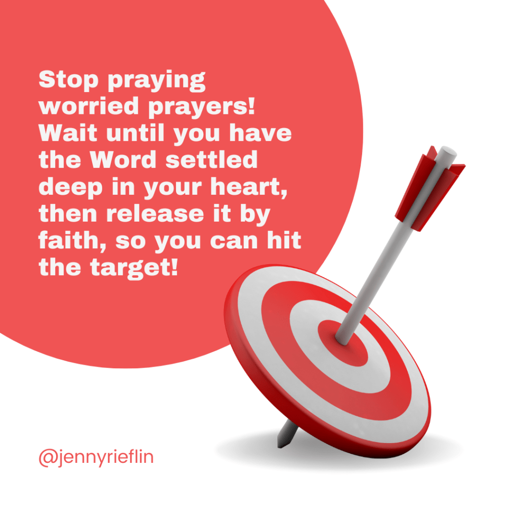***Pray this prayer with me right now: Father, forgive me for the times when I gave in to the temptation to worry. I will not allow shame because of my humanity, but instead choose to see it as an opportunity to remind myself of what Your Word says. I commit to filling up on Your higher truths in my life, and then when it’s so deep in my heart, I will open my mouth and release my faith so I can HIT THE BULLSEYE every time, in Jesus’ name, Amen! ~Be Blessed, Jenny xoxo