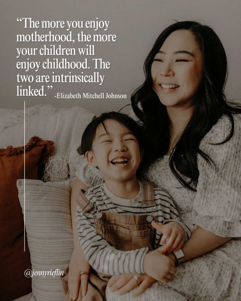 The more we enjoy our experience of motherhood can be felt by our children and allow them to rest in our love and truly enjoy their childhood.